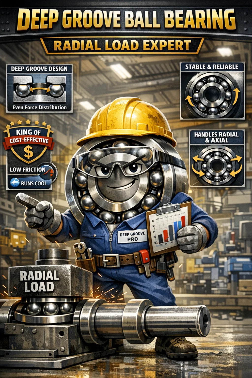Dype sporkulelager er primært utformet og best egnet for å håndtere radielle belastninger (det vil si krefter vinkelrett på akselen, som kraften til en tung gjenstand som presser ned på akselen).